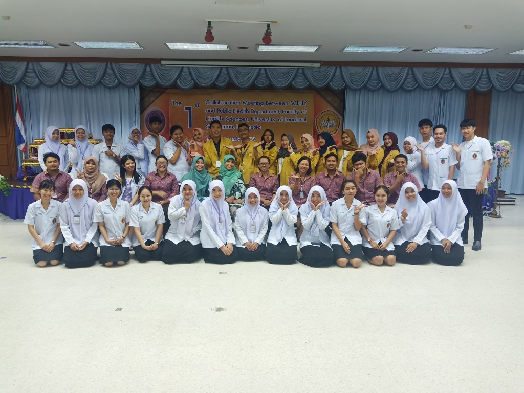 Institusi pendidikan pada era sekarang ini dituntut untuk semakin meningkatkan kerjasama internasional dengan berbagai institusi di luar negeri. Kerjasama internasional seperti riset bersama, pertukaran mahasiswa dan berbagai kegiatan lain yang dapat dilakukan dalam kerjasama internasional dapat meningkatkan kualitas institusi pendidikan. Bahkan, kerjasama internasional merupakan salah satu poin penting dalam akreditasi institusi pendidikan. Oleh karena itu, Jurusan Kesehatan Masyarakat Fakultas Ilmu Ilmu Kesehatan Unsoed terus berupaya untuk meningkatkan kerjasama internasionalnya. Salah satunya dengan melakukan study visit ke Sirindhorn College of Public Health Yala, Thailand. Kunjungan ini dilaksanakan pada Tanggal 19-20 Desember 2019 ini dilakukan oleh 2 orang staff dosen dan 10 orang mahasiswa yang terseleksi untuk berpartisipasi dalam kegiatan tersebut.